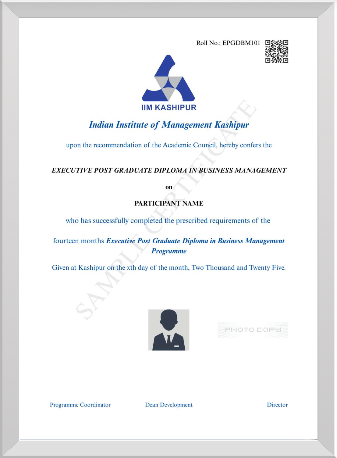 Participants who are unable to clear the evaluation criteria but have the requisite attendance will be awarded a ‘Certificate of Participation'. Successful participants will also be accorded IIM Kashipur Executive Alumni status.